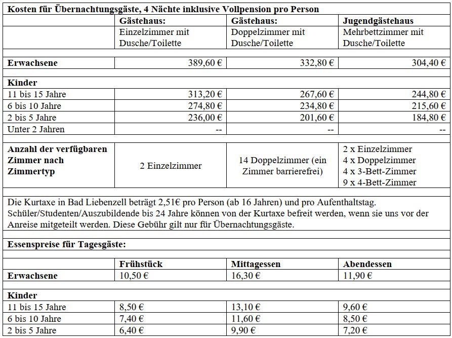 Wir bitten um Übeweisung des Betrags innerhalb von 2 Wochen nach Erhalt der Rechnung. Mit der Rechnung bekommst du noch einen Fragebogen zum Essensangebot.